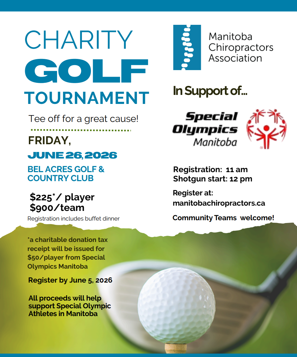 The Manitoba Chiropractors Association is proud to support our members in giving back to the communities we serve. Through meaningful initiatives and events, MCA members demonstrate their commitment to fostering positive change and building stronger connections. We invite you to join us in these efforts. Whether through our annual golf tournament in support of Special Olympics Manitoba, sponsorship opportunities, or other impactful initiatives led by our Community Engagement Committee, there are many ways to get involved and make a difference.Together, we can create lasting impacts and strengthen the communities we call home.